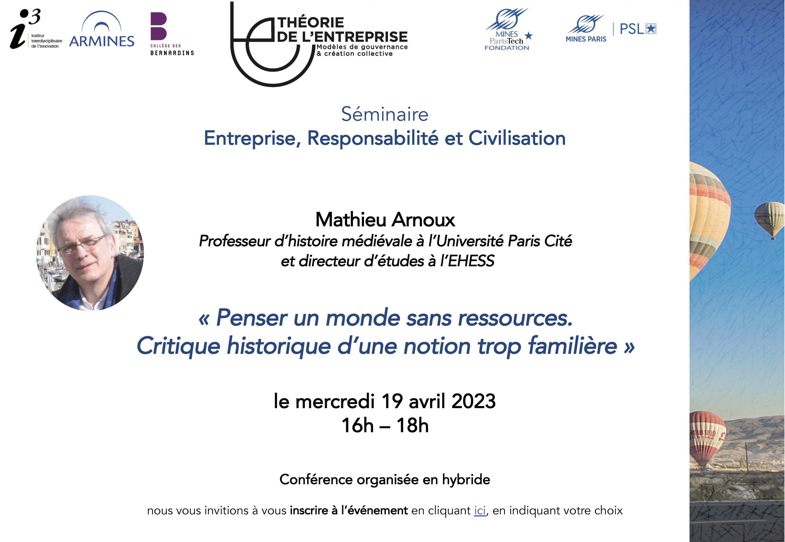 L’objectif de ce séminaire réunira de manière régulière (tous les deux mois environ) les chercheurs de toutes les disciplinaires et les acteurs soucieux de comprendre les transformations contemporaines et de contribuer à u nouveau cycle de recherches et à l’émergence de nouveaux cadres de pensée pour rendre l’entreprise plus soutenable et plus souhaitable.
